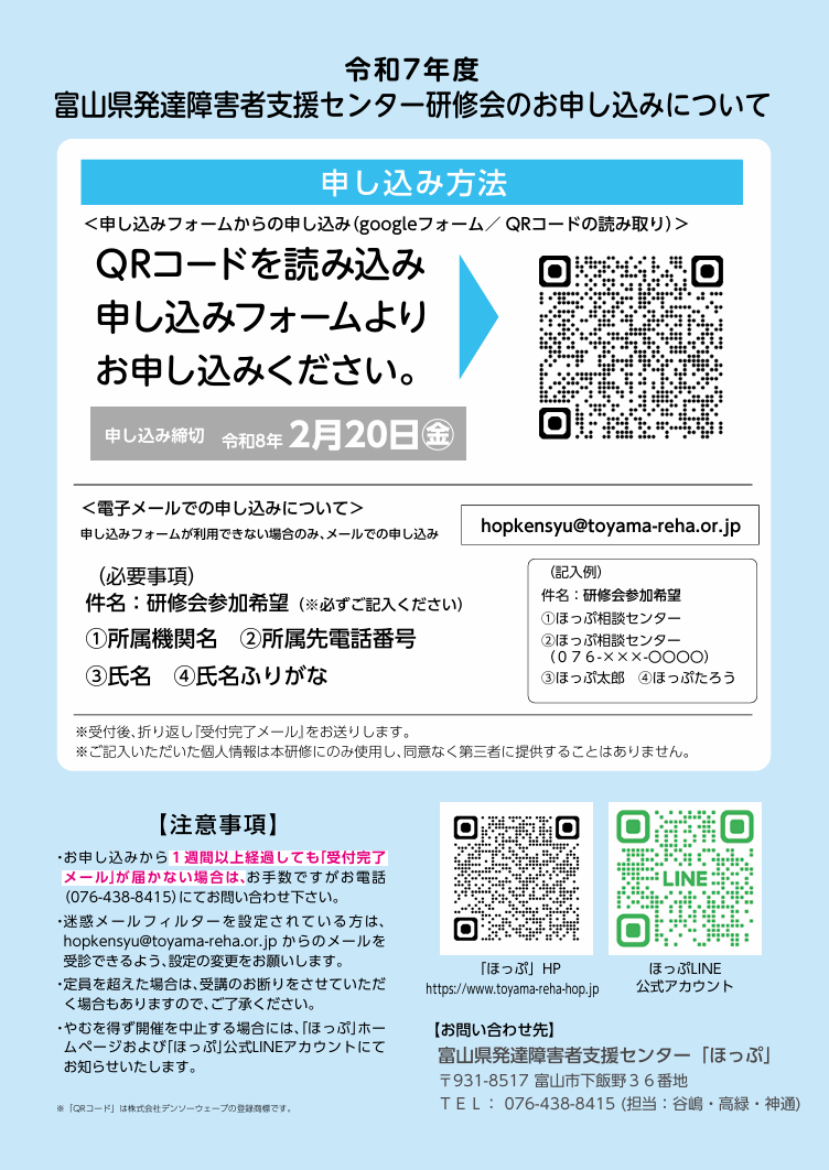 ※この研修会は支援者対象です。
